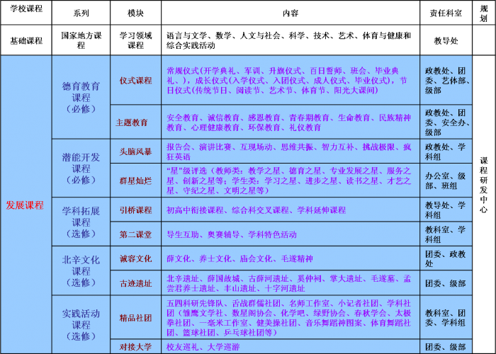 “285”学校课程建设——课程体系