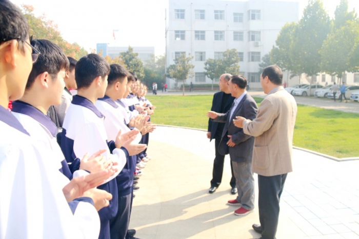 2018年10月24日,赵家德将军莅临母校,看望受资助的品学兼优的学子,亲切地与同学们进行了交流。