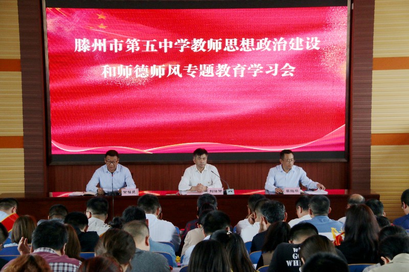 为贯彻落实教育部关于“教师思想政治和师德师风建设经验交流暨师德专题教育启动部署会”的精神要求,全面提升教师思想政治素质和职业道德水平,加强和改进新时代师德师风建设,5月21日下午,市第五中学在会议室召开师德师风建设专题教育学习会,会议由党总支书记刘汝仲同志主持,全体教职工参会。