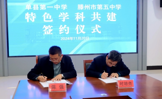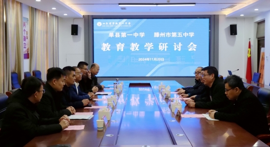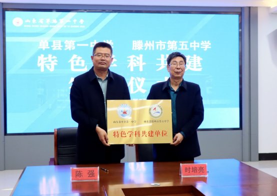 陈强围绕滕州第五中学的办学历史、办学规模、学科优势及下一步工作打算等方面进行了介绍。他表示,单县第一中学办学规模大,办学环境美,办学条件优,办学质量高,办学特色显著,值得我们学习和借鉴。今后,将在特色学科共建的基础上,进一步加深、拓宽两校的合作,助力学生个性成长,促进学校特色发展。
