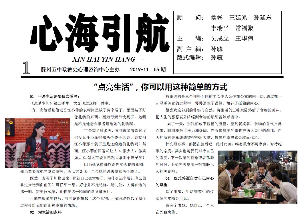 滕州五中政教处心理咨询中心主办 2019-11 55期