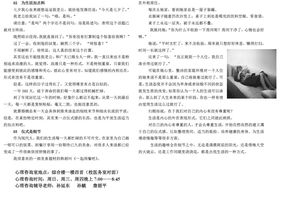 心理咨询时间:周日、周三、周四晚上7:00——8:45