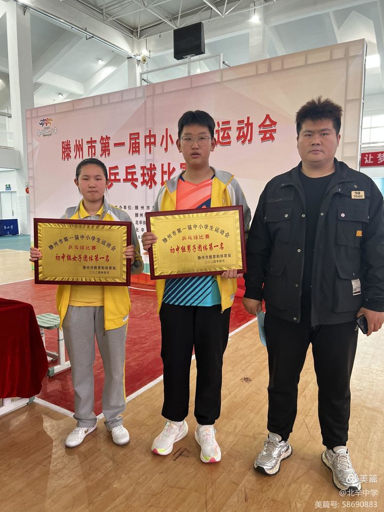 北辛中学学院路校区荣获滕州市第一届中小学生运动会乒乓球比赛男、女子团队第一名
