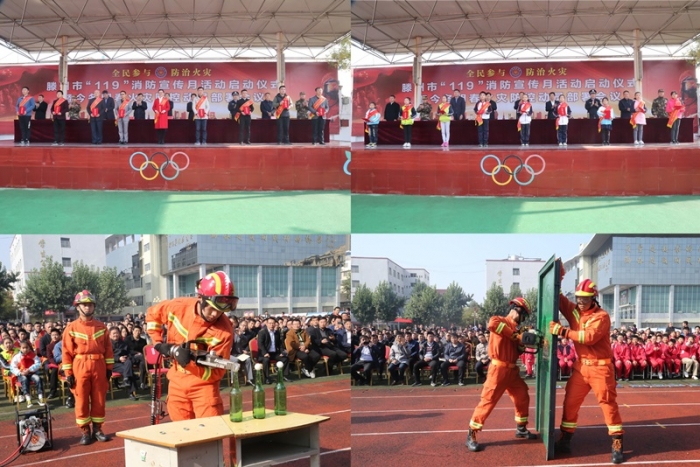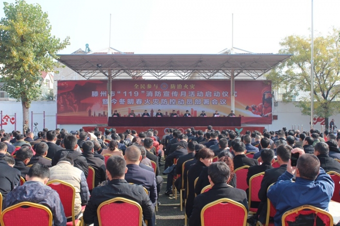 11月9日上午,滕州市政府在育才中学隆重召开了2018年“11.9”消防宣传月活动启动仪式暨今冬明春火灾防控动员部署会议。市政府副市长、公安局局长梁龙雨,市委宣传部常务副部长殷涛,安监局局长宋捷,公安局副局长张厚银,教育局副局长张建军,住建局副局长王慎勇,市消防大队大队长齐福建、教导员曹昌亮等出席会议。会议由市安委会办公室主任、安监局局长宋捷主持。