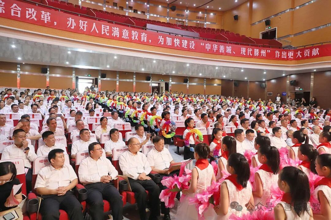 就做好下步教育工作,王广部提出五点希望和要求。一是把牢政治方向,践行立德树人新使命。坚持把立德树人贯穿到教育发展全过程、各环节,强化思想政治引领,提升德育工作水平,加强学生素质教育,培养德智体美劳全面发展的社会主义建设者和接班人。二是突出优质均衡,打造教育发展新高地。聚焦办好人民满意的教育,学前教育要抓普惠,义务教育要抓均衡,高中教育要抓品质,职业教育要抓融合,推动各学段优质均衡发展,让全市人民享有更加公平优质的教育。三是抓实“三名工程”,展现教师队伍新风采。坚持教育家精神引领激励,把“三名工程”作为加快滕州教育高质量发展的主抓手,持续加大投入,梯次培育扩面,全力打造业务更加精湛的教师队伍、管理更加精细的班主任队伍和治校更加有为的校长队伍,形成好老师大先生竞相涌现的生动局面。四是深化改革创新,激发教育教学新活力。认真贯彻落实党的二十届三中全会关于深化教育综合改革的部署要求,加快推进重点领域改革,转变育人方式,创新办学模式,优化管理机制,突出数字赋能,推动滕州由教育大市向教育强市转变。五是坚持齐抓共管,营造尊师重教新风尚。强化党的领导,切实以教育系统党建水平的整体提升推动全市教育事业高质量发展。提升教育保障水平,切实做到教育投入优先安排、教育人才优先引进、教育问题优先解决。广泛宣传教育战线上涌现出的先进典型,让广大教师在岗位上有自豪感、在事业上有成就感、在社会上有荣誉感。